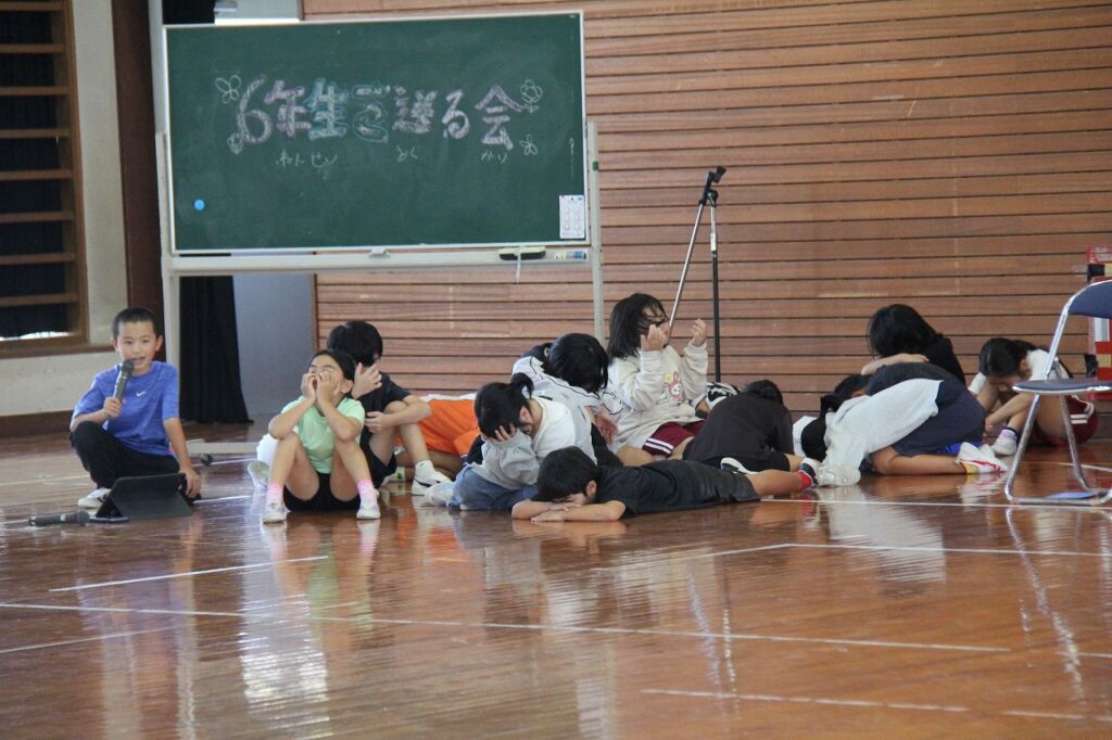 6年生を送る会 2026年3月11日 別れの時期が近づいてきました。在校生はこれまでみんなのために頑張ってくれた卒業生に対して、感謝の気持ちを込めたゲームや出し物を披露してくれました。感慨深い素敵な時間が流れました。